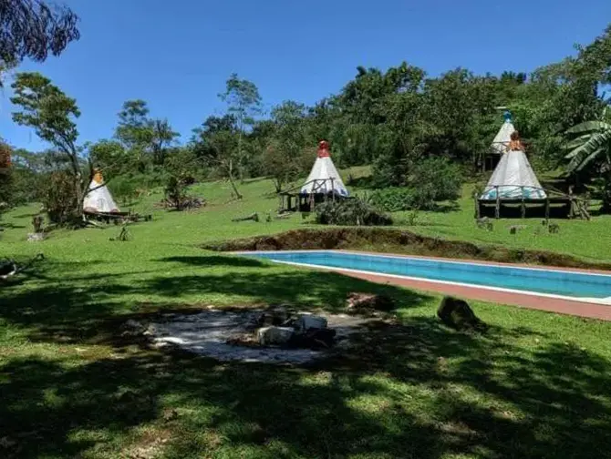 Elegante accommodaties: Tepees Cuetzalan in Cuetzalan del Progreso biedt luxe tentaccommodaties met een zwembad, zonnebrand en weelderige tuin. Gasten genieten van een prachtig uitzicht op het zwembad, het terras en de omliggende bergen. Comfortabele voorzieningen: het pand beschikt over een openbaar bad, picknickplaats, kinderzwembad, familiekamers en beveiliging van de hele dag. Gratis privéparkeren op locatie is beschikbaar voor het gemak van de gasten. Buitenruimtes: buitenruimtes zijn onder meer een terras, eetgedeelte en zitruimte. Het zwembad biedt een ontspannende retraite, terwijl het zonnebrand en de tuin voldoende ruimte bieden voor vrije tijd. Lokale attracties: gelegen in Cuetzalan del Progreso, Tepees Cuetzalan is in de buurt van attracties zoals de Chichicazapan Pueblo en de Chichicazapan River. Gasten kunnen de omgeving verkennen en genieten van de natuurlijke schoonheid van de regio.